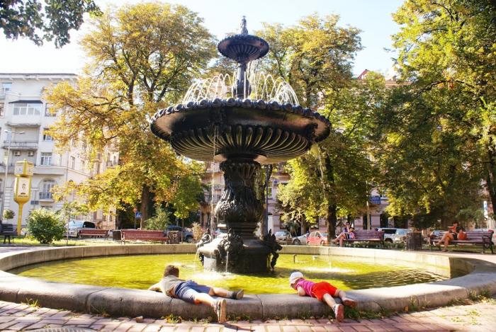 Бродили без строгого маршрута, были просто намечены основные места, которые хотелось осмотреть. Посетили всё, что хотели, плюс нашли еще несколько детских площадок и чудесные скверики, например как этот рядом с театром имени Франко