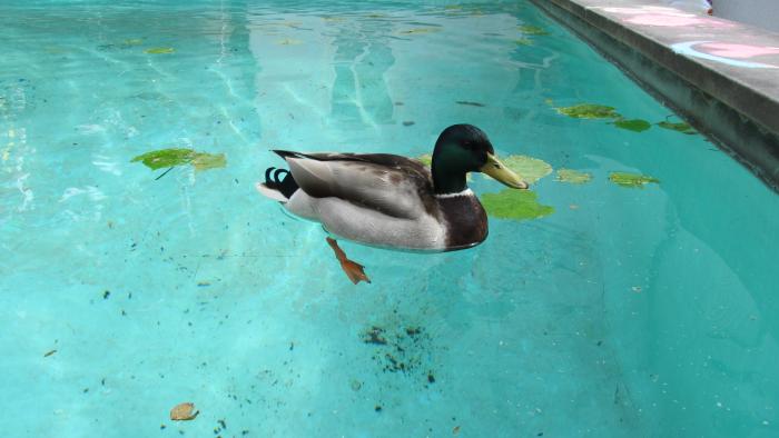 И только одинокая утка, по хозяйски расположившись в бассейне с фонтаном не грустила.