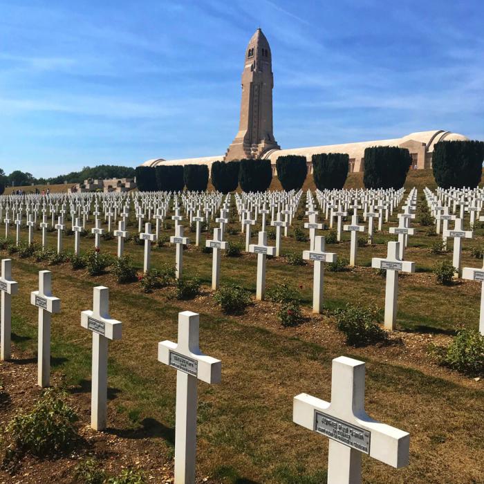 Мемориал в местечке Дуамон просто взрывает голову. На местном кладбище в поименованных могилах покоятся 16 000 солдат и еще порядка 200 000 лежат под гигантской часовней в подземной костнице. Конечно, по сравнению с нашей питерской Пискаревкой это капля в море, однако после такого ликбеза на местности смеяться над шутками вроде «второй флаг Франции — белый» больше не хочется.
