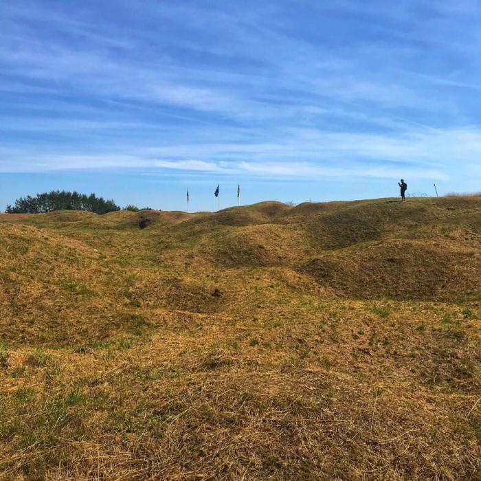 Даже если отойти немного в сторону, то сбежать от следов былой войны не удастся: земля вокруг похожа на луну, слегка поросшей травой, а где-то и напрочь заросшая лесом. Однако, старые линии траншей, окопов и воронки от взрывов не дают себя обмануть.
