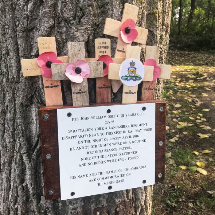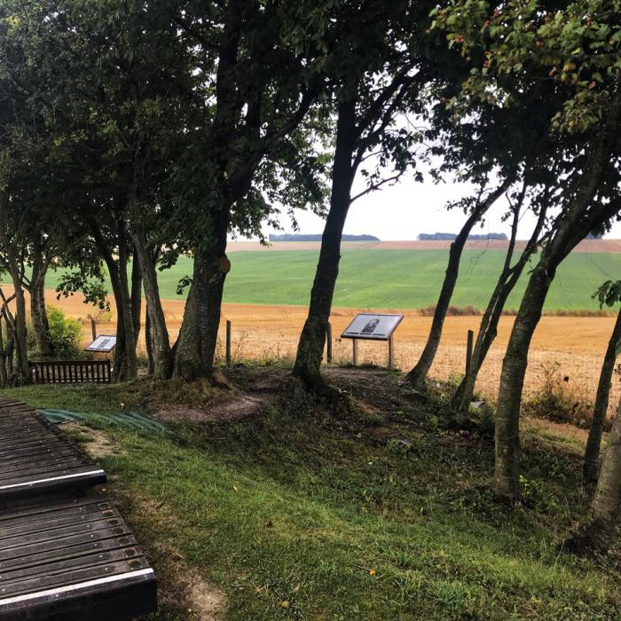 Внутрь мы, к сожалению, попасть не смогли, тк хозяева были в отпуске. Однако и вокруг было на что посмотреть — вдоль старой линии фронта проложен пеший трекинговый маршрут. Вглубь полей и лесов мы уходить не стали, но посетили довольно любопытный мемориал Шотландским гренадерам, сражавшимся в этих местах сто лет назад.