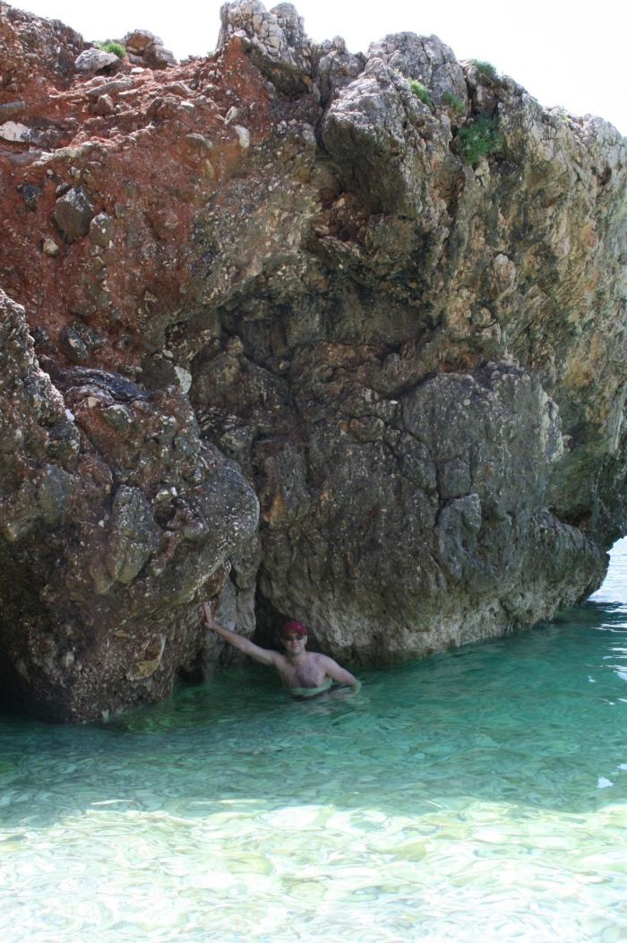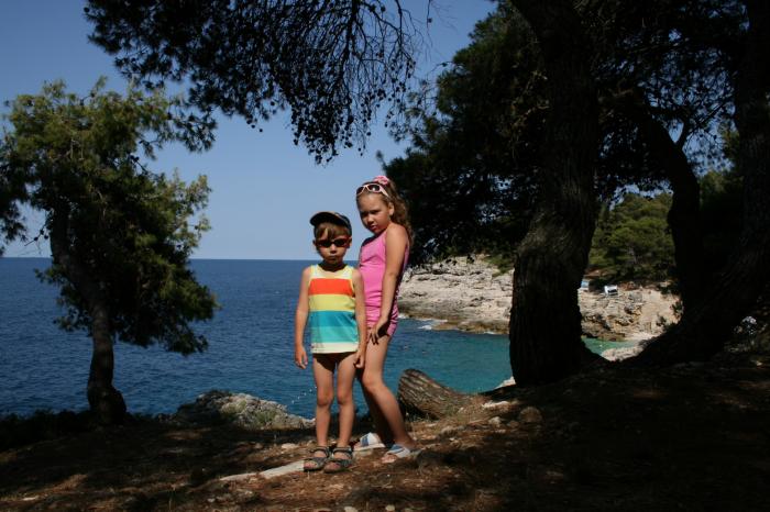 Немного о море. Приехали мы в Хорватию 27 июня, море было уже очень теплое (как писали на интернет-сервисах типа Gismeteo, температура воды была 26 градусов). Мы ходили на пляж в основном с 10 до 12 и с 16 до 18.30. В утренние часы море было абсолютно чистое, с маской плавали до буйков, все было видно отлично. Во второй половине дня море было помутней, к берегу могло прибить небольшое количество мусора (в основном водоросли, сосновые иголки). Также во второй половине дня на пляже появлялось большое количество молодых людей из местного населения, которые оккупировали всю мелководную часть берега, играя с мячом, что нам не понравилось.