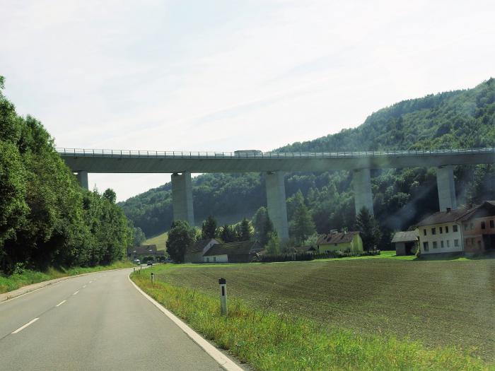 Ближе к Альпам пошел дождь, даже ливень, но скорости уменьшились лишь до 120 км\ч. Даже фуры шли 110-120. Через Вену проехали быстро, минут за сорок.