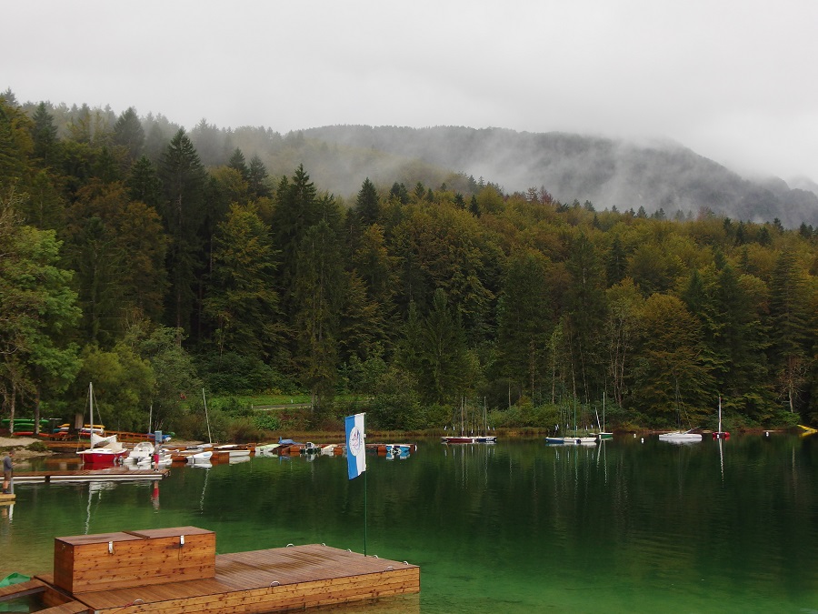 Но вот начался спуск, минут 40 езды и мы внизу. Уже появилось на указателях название нашей деревушки Уканц, а вот и озеро Бохинь, во всей своей красоте! Со всех сторон окруженное Альпами (Национальный парк Триглав).