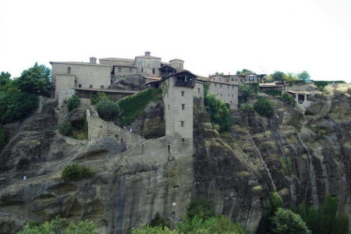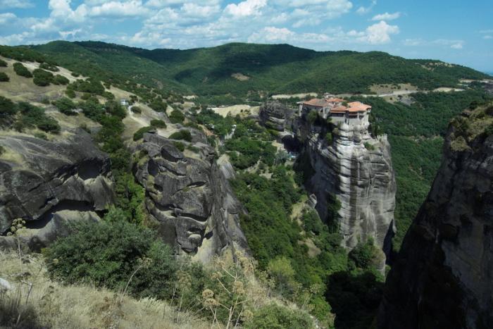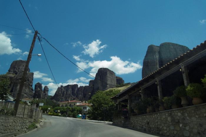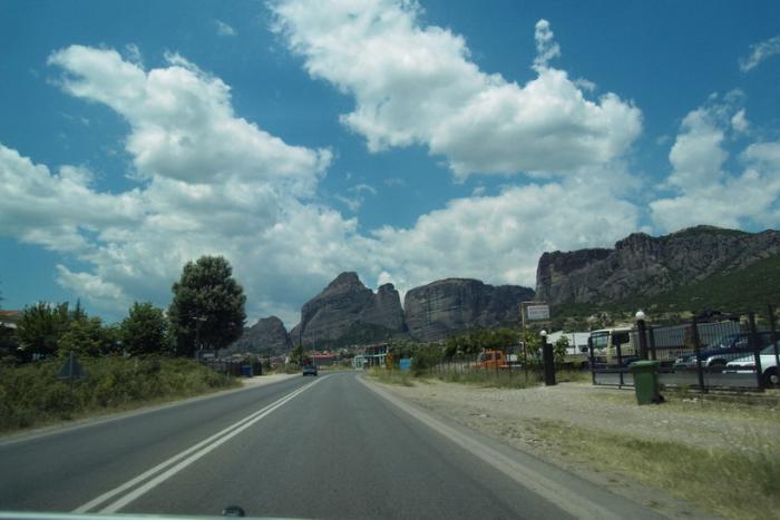 От Афин до деревушки Кастраки, которая находится прямо под скалами Метеора, перегон небольшой, меньше 400 км, поэтому, выехав с утра, к обеду прибыли на место, быстренько нашли и быстренько поехали в главный монастырь.