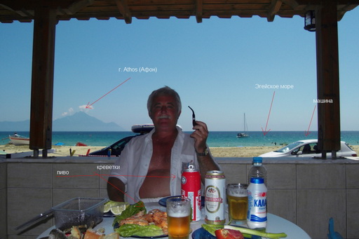 Небольшое сельцо, вдали от организованных туристических маршрутов. Через залив — гора Атос (Афон), где расположена монашеская республика. Туристы — болгары, немцы, чехи, больше всего почему-то сербов. Песчаный пляж длиной больше километра и чистейшее море.