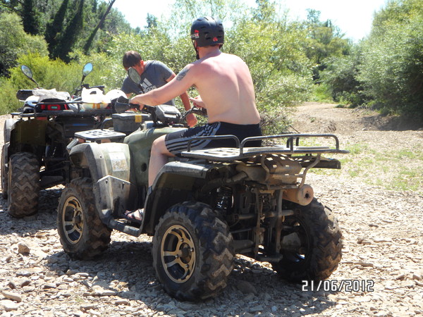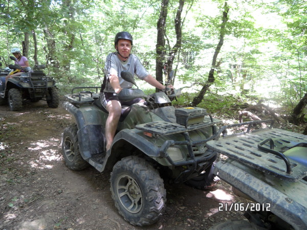21 июня новая экскурсия. Точнее развлечение. Взяли часовую прогулки на квадроциклах. Муж в восторге. Сам за рулем. Я поехала с инструктором. Поездка была очень веселой и мокрой с головы до ног. Пришли к выводу, что час это мало. Решили еще раз потом приехать если получится на большее время.