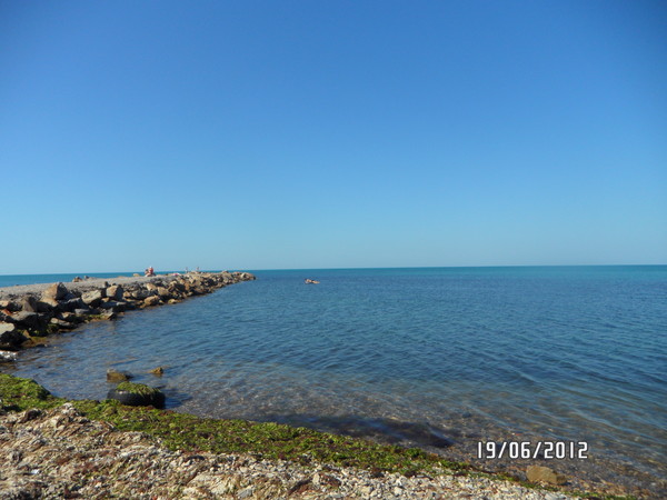 УРА в 23:30 по нашему времени (там была еще лишь 19:30) мы в п.Джубга. В пути 4 дня и пройдено 5055км. Посчитали затраты, вышло – на бензин потратили около 10тыс.руб., на удобства (еда, душ, замена колеса-самое дорогое вышло, оплата стоянок) около 7тыс.руб., сувенирная продукция – 1,5тыс.руб. Сон, сон, сон. Все же с дороги устали. Утро (19 июня). Проснулись по своему времени часов в 9 утра, а у них еще 5 часов. Делать нечего. Все спят. Посмотрели киношку на ноутбуке, (перехожу в описании на их время) часов в 7 утра, нас покормили завтраком, решили остаться пока что на пару дней, чтобы определиться отдыхаем или поедем дальше. Поспрашивали куда можно сходить, нам вкратце сказали топать к морю, и там уже все будет. Пошли изучать. До моря пешком вышло минут 15. И вот оно – долгожданное море. Прохладно, так как утро (хотя прохладно там, это жара у нас в городе, где-то градусов 22 плюса).