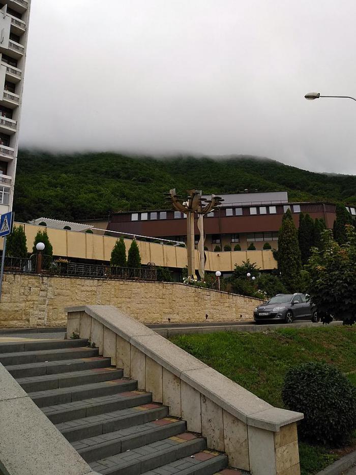 Сегодня очень не жарко, низкая облачность и воздух наполнен влажностью, поэтому мы спокойно преодолели это расстояние до парковки. Гора Машук сегодня была а тумане. Если бы мы на неё поднялись, то кроме молочно-белого и сырого воздуха вокруг себя ничего бы не увидели.