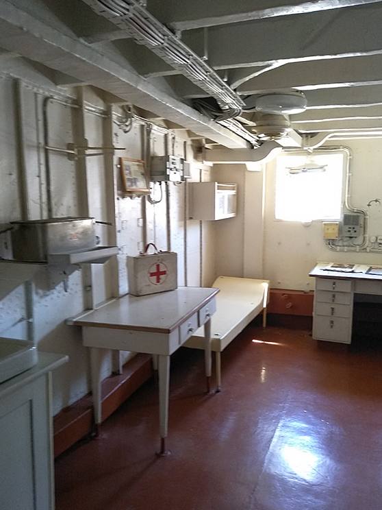 в кают-компании, в корабельном мед.пункте.