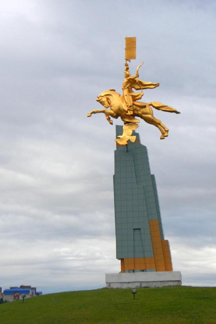 Памятник «Золотой всадник» посвящен герою народного эпоса «Джангар».