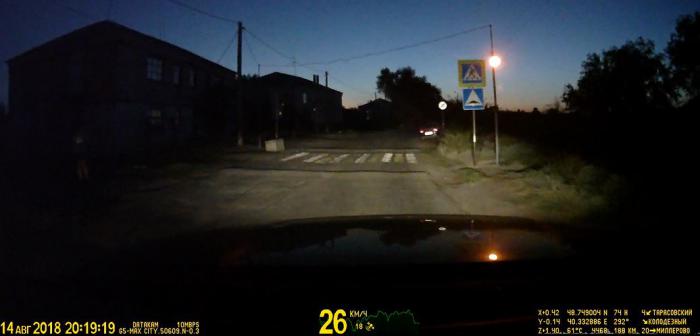 Доверившись навигатору, мы продолжали движение через населенный пункт, но и здесь движение стало уплотняется. (Конечно, не только мы пользуемся Яндекс.навигатором). В середине поселка навигатор соптимизировал маршрут, предложив объездную дорогу. Мы, как и впереди идущая машина, свернули налево. Это дорога была существенно меньше и хуже, чем дорога, идущая через центр Тарасовского. Она никак не была освещена. Через пару километров мы поняли, что объезд у нас будет долгим. На карте навигатора наш значок только немного изменил свое положение. Я вообще не понимаю, почему программисты из Яндекса не сделают в своём приложении масштабную линейку? Принимая решение по навигатору абсолютно невозможно оценить расстояние на карте.
