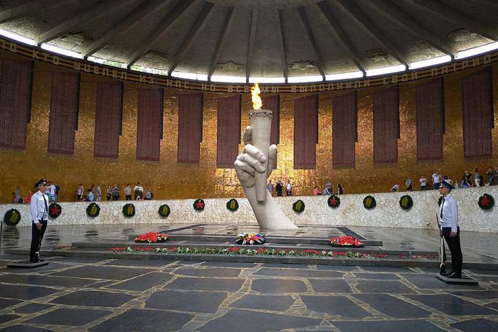 Далее мы попали в "Зал Воинской Славы", или, как его ещё называют, пантеон Славы. Он посвящен павшим защитникам Сталинграда. На смену ликованию и торжеству победы приходит настроение скорби, ощущение утраты.