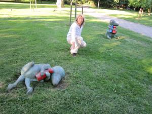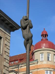 Замок. Сначала мы обошли его вокруг. Впечатлились. Прошли на внутренний двор, где стоит конный памятник основателю замка и лестница с разными тварями. Судя по их облику, весёлые, добрые и отзывчивые люди тут проживали! Впрочем, где в те времена легко жилось!