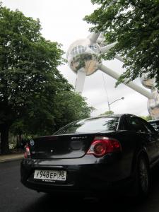 В Брюсселе одной из задач ставил себе патриотическую- надругаться над символом НАТО в особо циничной форме- т.е. написать на него, раз уж там это так принято. Писающий мальчик, писающая девочка- ну и я под шумок как-нибудь… Но проскочили их ходом, да и писать не очень хотелось. А приехали мы в Атомиум. Сия хрень есть модель атома железа, многократно увеличенная. Построена она была к Международной выставке в 50-е годы и до сих пор нещадно эксплуатируется клятыми буржуяками в корыстных целях. Поднялись на лифте на 106 метров- пешком не пускают- и смотрели окрестности. В окрестностях оказалась вся Европа. Я предполагал, что она небольшая, но чтобы настолько небольшая! Правда, потом уже мне рассказали, что это не сама Европа, а её макет. А я-то уж было решил, что пора домой ехать, так как всю Европу уже осмотрели.