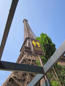 Наутро на рецепшене мы приобрели билеты на развозку, ходящую до метро прямо от ворот, и проездные на метро на день. Метро, действительно, оказалось недалеко- 10 мин. на автобусе. Разобравшись со станциями, мы помчались к Эйфелевой башне. Под ней змеилась огромная очередь желающих подняться на лифте и небольшая очередь для пешеходов. Поскольку мы принципиально залезаем на всё что выше нас ростом, мы тут же залезли на эту башню. Могучая конструкция! Впечатлили меня старые фото, где запечатлены этапы строительства, начиная с котлована и заливки фундамента. Действительно, Эйфель- Инженер!