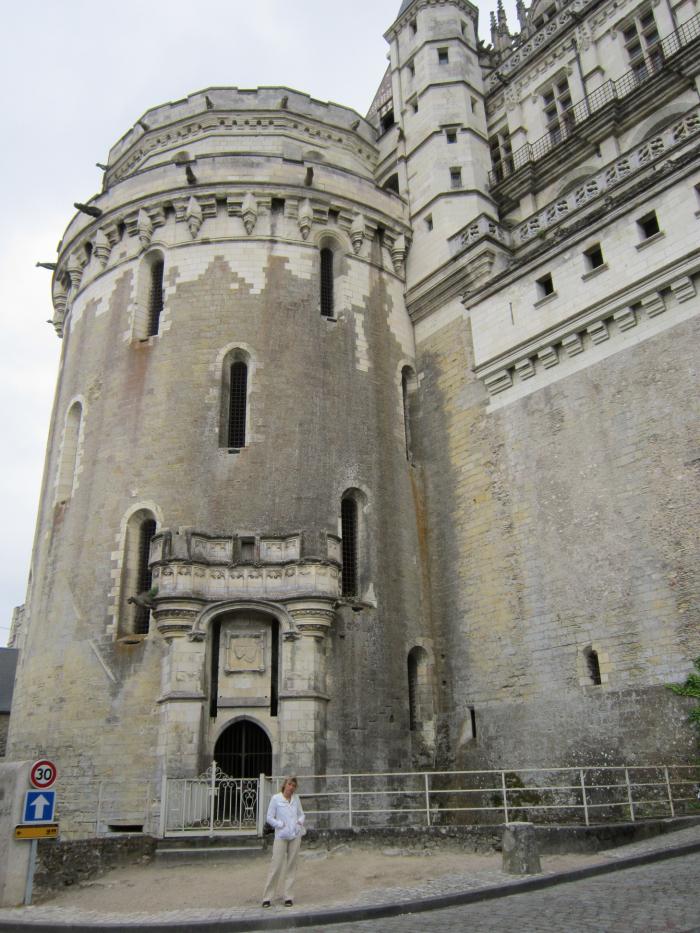 Продолжив наутро наше путешествие по берегам Луары, мы увидели промелькнувший неопознанный замок. Но путь наш лежал в королевский замок Амбуаз. Поскольку было достаточно рано, замок был ещё закрыт на проветривание, и мы обошли его вокруг. Правда, в отличие от известной песенки про вассала, туалет в стене замка предусмотрительно был открыт.