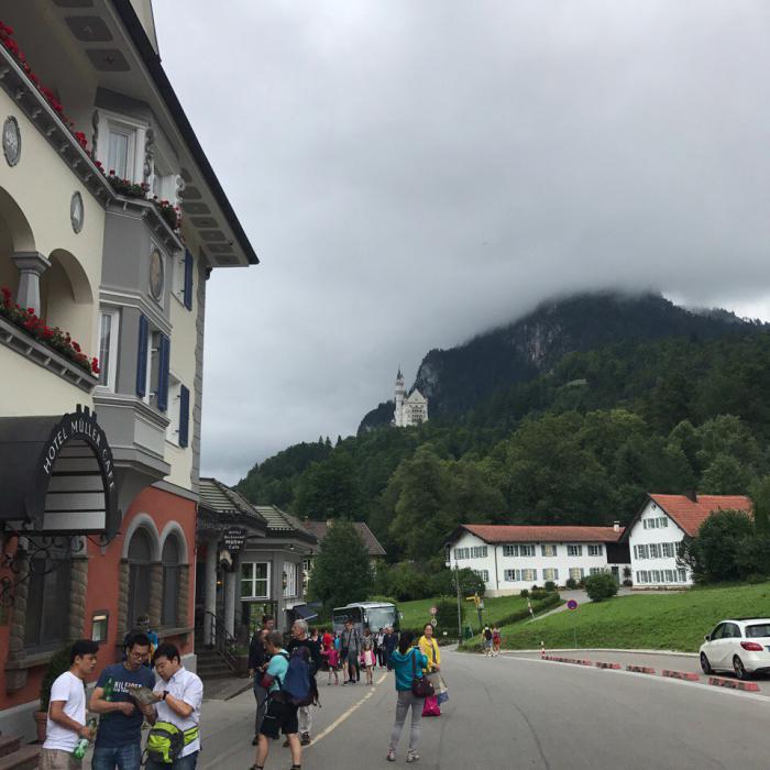 Но на самом деле он нас скорее разочаровал. Нойшванштайн — это тот самый случай, когда открытка (или отфотошопленная картинка из интернетов) в 10 раз лучше оригинала. Потому что, когда ты подъезжаешь к замку, ты видишь вот что: