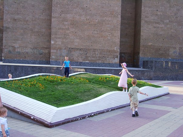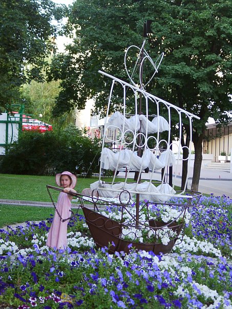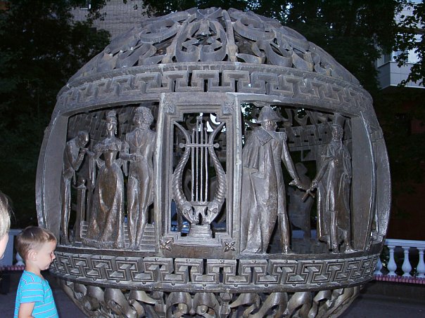 Насмотревшись на слонов и носорогов, мы отправились к месту ночлега. Через сеть знакомых мы нашли в Ростове-на-Дону семью, которая в это время как раз проводила отпуск в Европе. Они согласились поселить нас в своем двухэтажном доме в частном секторе Ростова совершенно бесплатно. Заселившись, мы отправились гулять по центру города. По отзывам путешественников у нас сложилось впечатление, что в Ростове обязательно надо погулять по набережной. Видимо, это удовольствие для тех, кто любит гулять от ресторана к ресторану. Во всяком случае, на нас набережная особого впечатления не произвела. А вот одна из центральных улиц города — Пушкинская — понравилась. Много старинной застройки, зелени, цветов. Клумба в виде книги привела в восторг наших детей (оказалось, что угрюмое здание рядом с ней — городская библиотека). Очень интересный памятник Пушкину в виде двух металлических сфер, с вырезанными сценами из жизни и произведений поэта. Поужинали в Макдональдсе (цивилизация!) и на боковую.