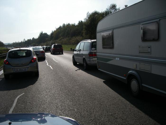 29.09.11. В 8.00 прибыли в Росток(Германия) и прямиком по навигатору в Прагу 750км. У нас получилось чуть больше. Потому, что нельзя одновременно пользоваться двумя навигаторами и картой. С картой нужно только сверяться или пользоваться чем то одним. Жена как обычно мирно дремала, свив себе гнёздышко на заднем сиденье, с небольшим барчиком… Приятель почти всю дорогу ковырял регистратор и навигатор( только купил) поэтому наверное и раздавил. На всём пути мы так и не встретили хоть какой-нибудь шиномонтаж. Машину не много потряхивало. Это давило на нервы. В Германии хорошие автобаны, но создалось впечатление, что половина из них «ремонтируется». Закрыта одна полоса, но работ почти нигде не ведётся. Да впрочем визуально и ремонтировать то нечего-идеальное покрытие дороги. Отсюда ограничение по скорости 60-80-90км/ч, заторы, пробки. И всё таки в Германии самые продуманные автобаны: довольно понятные съезды и указатели, много бензоколонок и парковочных мест с бесплатными чистыми туалетами, да ещё и дороги бесплатные, много придорожных гостиниц, что нельзя сказать о Франции и Испании.