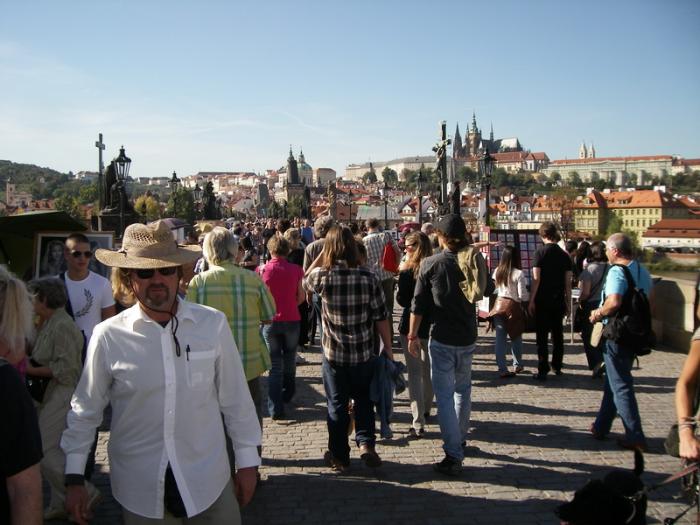 30.09.11. В Праге мы планировали провести 2дня, т. к. раньше никогда не были. Утром очень легко позавтракав, мы на трамвае поехали в центр и без труда заказали две экскурсии (очень много русских гидов и тур. компаний) одну пешеходную 20евро/чел и одну вечернюю на теплоходике 35евро/чел. Пешеходная экскурсия нам понравилась знаменитый пражский мост из за большого колличества народа почти не виден а вот на корабле 3-х часовая-отстой. Сели на судно. «Шведский стол», который там планировался--это одно название. Очень тесно, напитков никаких нет, и в очереди простояли 40 минут. Пока стояли в очереди, освещённая Прага закончилась. Потом пробка в доке примерно час двадцать, туда и обратно. унылое зрелище после дока тёмная река минут 30, и обратно. В общей сложности Прагу можно посмотреть с воды минут за 30. Разочаровались.