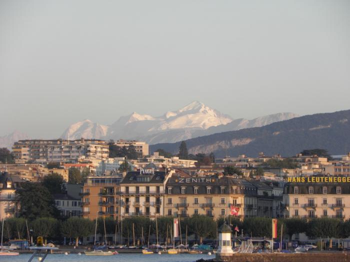 04.10.11. Выехали часов в 7утра. Дальше наш путь лежал через Швейцарию 430 км. Ограничение по скорости по Швейцарии 120 км/ч Решили в города не заезжать, только в Женеву, где у нас был забронирован отель. Очень живописная дорога—туннели, горы, озёра. Часто останавливались полюбоваться красотой. Евро в Швейцарии не берут, а если берут, то сдачу дают во франках. В Женеву мы прибыли довольно рано, заселились в отель и пошли гулять по городу. Красивый богатый город с видом на гору Монблан. Кстати, граница между Швейцарией и Францией проходит прямо через Женеву. Мы остановились во Франции, почти в 1.5 раза дешевле. От отеля до центра всего 5-6 остановок на трамвае. Одна поездка на трамвае 2.5евро. Преимущество в движении в Женеве, Праге и насколько я помню в Голландии имеет трамвай и велосипед. Очень быстро ездят. Билет на трамвай в Женеве самому взять нереально т. к. надписи на терминале на не понятном нам языке. Нужна помощь со стороны. Пара снимков Женевы