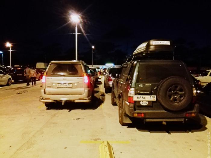 Немного выбиваясь из графика, уже за полночь, въезжаем на территорию отстойника паромной переправы «Порт Кавказ». Я много читал о способах проезда и поначалу тоже хотел купить электронный билет. Но слишком уж много паникёров было на тему зависаний и сбоев в работе этой системы. А зря. В итоге мы получили 4 часа 30 минут ожиданий погрузки, в то время, как оформившиеся через сайт, один за другим «пролетали» свою очередь.