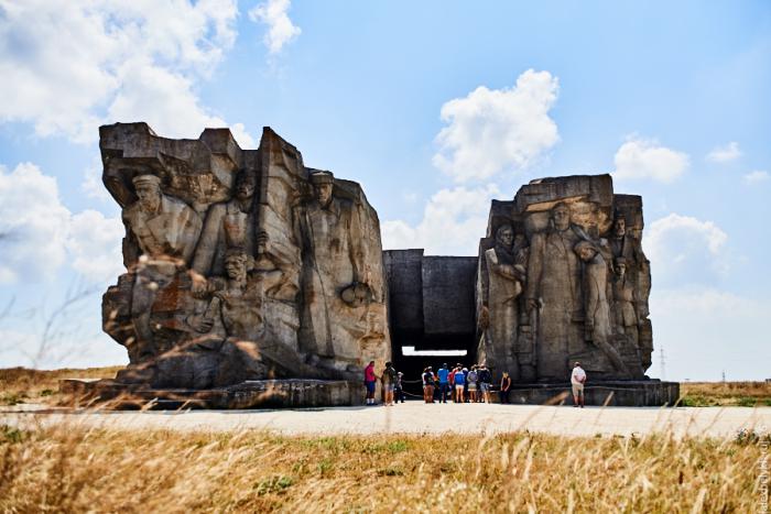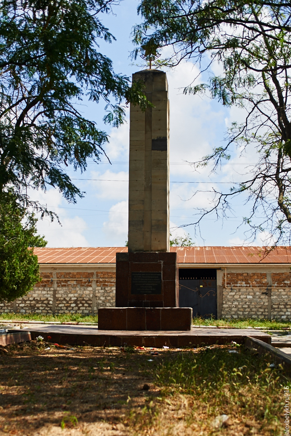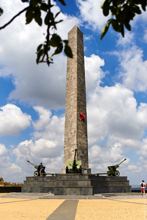 Едем дальше. Путь от крепости к известному монументу под названием Аджимушкайские каменоломни проходит мимо обелиска братской могилы советских солдат, павших за Родину во время Великой Отечественной Войны. Останавливаемся у его подножья, чтобы сделать несколько фото.