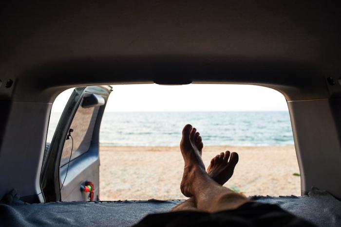 Вообще-то, мы надеялись встать лагерем в кемпинге неподалёку от корабля, но уже на подъезде поняли, что придётся искать другое место для ночлега. Здешний берег просто утыкан автомобилистами и караванерами. Такая плотность населения на квадратный метр — жуткий перебор, на мой взгляд.