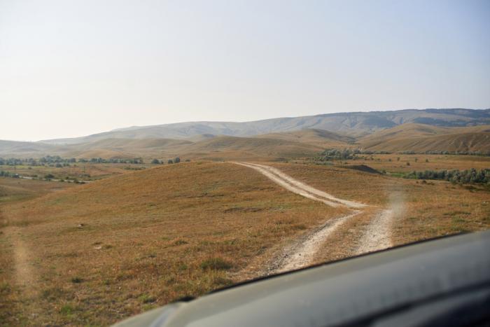 Следуя в направлении будущей стоянки, мы проезжаем мимо обмелевшего озера, вокруг которого всегда толпятся измазанные чёрной грязью отдыхающие. Перед нами озеро Чокрак и его знаменитые лечебные грязи.