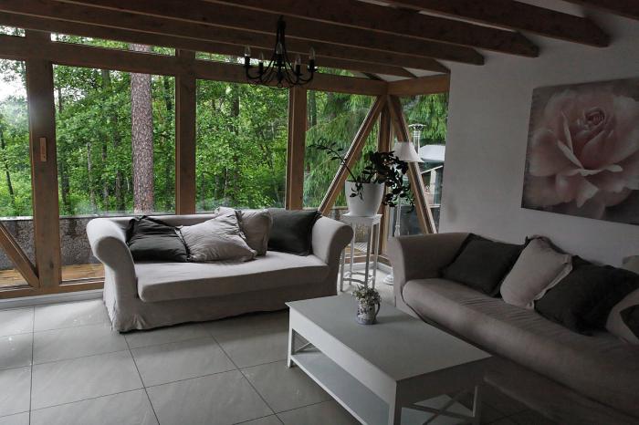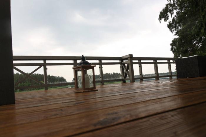 Мне эта база понравилась больше всего. Уединенное место, тихое озеро, всего несколько коттеджей. Никто ваше уединение не нарушит. Купание, рыбалка, возможность самому готовить или питаться в местном ресторане. Кормят рыбой, которая еще утром плескалась в озере. Каждый коттедж оборудован камином и в большинстве есть собственная сауна. Baltā villa (Белая вилла) кроме сауны имеет собственный бассейн и джакузи. На территории базы стоят противокомаринные установки. Также есть места для палаток, чтобы единение с природой было максимально. По всей территории парка отдыха доступен Wi-Fi интернет. Пока мы осматривали обстановку в одном из коттеджей, вся мебель для этого и других коттеджей заказывалась во Франции, остальная группа ушла на «Рысью тропу».