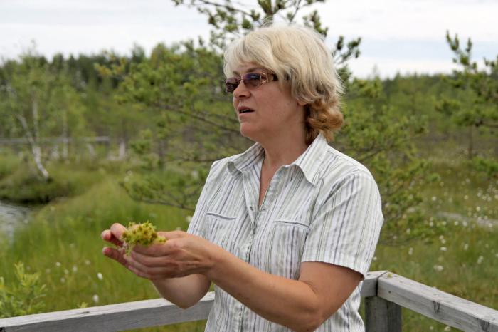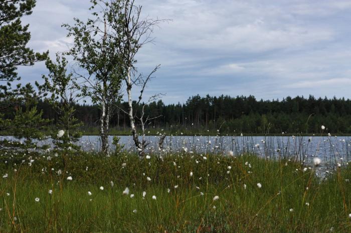 На берегу обустроены три места для отдыха со смотровыми площадками. С площадок открывается красивый вид на темную озерную гладь, в которой, как в зеркале, отражается окружающий пейзаж. Дальнейший участок тропы ведет через типичный открытый пейзаж высокого болота с маленькими болотными карликовыми соснами и березами. Вода в болотном озере очень чистая, и несколько смельчаков из нашей группы искупались. Местные рассказывают, что торф со дна озера можно использовать для СПА процедур.