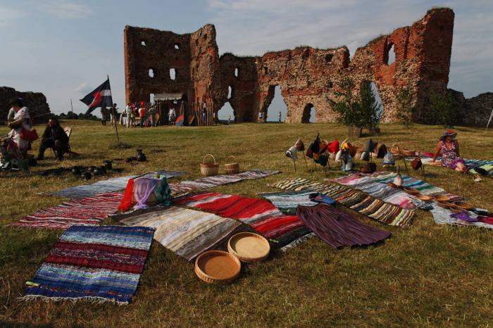 Затем мы поднялись в крепость, где проходила «Большая латгальская ярмарка». Ярмарка ежегодная. На ней можно познакомиться как с традиционными латгальскими ремеслами, так и попробовать национальные блюда. Кстати, ужин для нас был устроен здесь же. Все попробовали блюдо из серого гороха и домашнее пиво. На ярмарке широко было представлены изделия народных умельцев, и мы смогли приобрести домой красивые сувениры. После ярмарки началась подготовка к празднику «Лиго» (день Ивана Купалы).