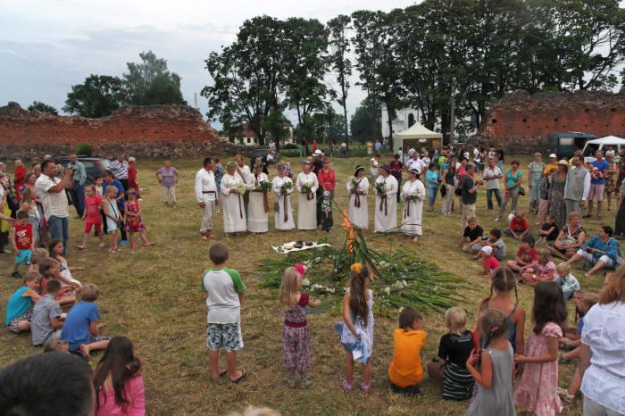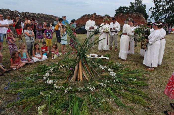 В календаре латышского крестьянина Лиго – это начало посева и сенокоса, астрономическое начало лета. Традиционное ожидание праздника Лиго означает также окончание всех весенних полевых работ, прополку огорода и цветника, разучивание песен, уборку дома, приготовление домашнего сыра и пива, выпечку пирогов, а накануне праздника – украшение дома и двора листьями аира, букетами цветов, гирляндами, березовыми и дубовыми ветками и венками. Мы понаблюдали взятие крепости, послушали народные латгальские песни, поучаствовали в народных танцах и посмотрели обряд жертвоприношению огню.