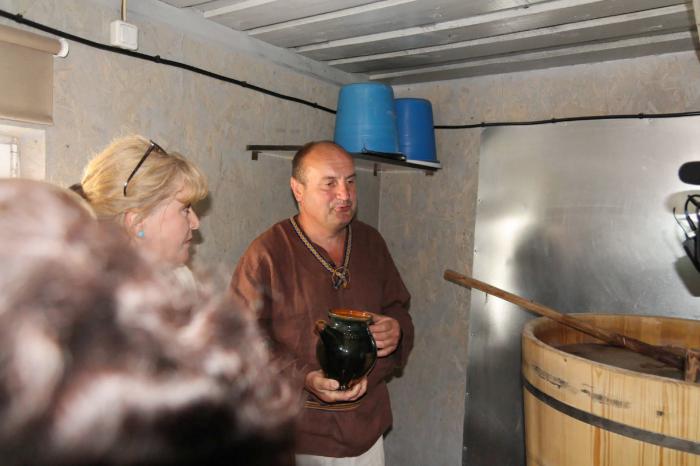 После музейной экспозиции неплохо бы перекусить, подумали организаторы, и повезли нас знакомиться с производителем пива Дайнисом Ракстиньшом (Берзпилс, Берзпилсская волость). Пивовар познакомил гостей с традициями пивоварения, которые он унаследовал от своего отца. И мы попробовали настоящего латгальского пива под местный сыр и копченую рыбу.