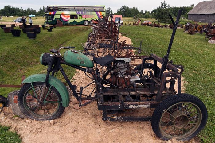На сегодня у нас насыщенная программа. Первым делом нас повезли в Лаздукалнскую волость, где некий народный энтузиаст открыл музей, затрудняюсь даже подобрать название. Сам он называет свой музей частной коллекцией древностей «Saipetnieki» (Saipetnieki, Lazdukalna pagasts, Rugāju nov.). Экспозиция состоит из 5000 предметов быта, одежды, интерьера, инструментов, сельскохозяйственной, авто- и мото- техники.