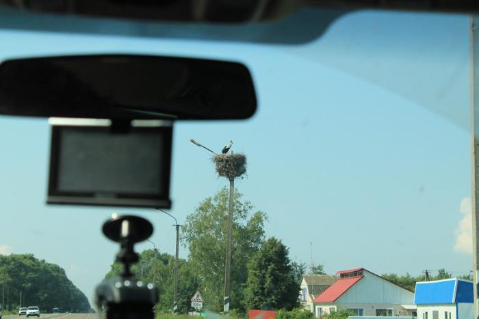 В семь утра солнце жарит беспощадно… поднимет мертвого… вроде малёх выспались. Последний суворовский переход. Все же видели в каком-нить военном кино танк с надписью «На Берлин!»… Рыжик нацарапал на пыльной дверце «На Киев!» и мы поскакали… Попутно заехали на очень популярный у местных вещевой рынок в Козельце, девки притарились недорогими качественными сарафанами и платьишками, подивились аистам, которые запроста гнездяЦа на обычных столбах
