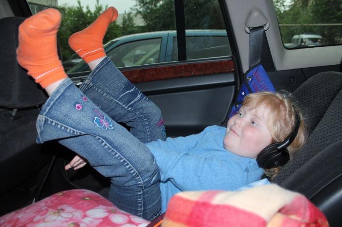 Вот так три дня и ехала… ногами к верху))) На потолке всеядный мультимедийник с экраном в 17 дюймов (американский автопром — ничё не скажешь), наденет наушники, чтобы никому не мешать и смотрит свои мультики. Ей говорят: «Рыжуля, смотри какая красота кругом!» Ну типа выгляни хоть в окошко… А она отмахивается — да на обратном пути посмотрю… и дальше в потолок))))