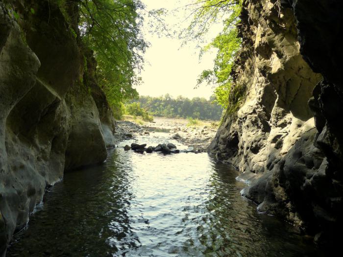 Картлос устроил нам экскурсию по своим владениям. Показал винокурню с элементами музея. Рассказал о своих планах, накормил завтраком под стационарным навесом во дворе. А потом предложил поехать с нами по интересным местам Кварели. Мы, конечно, согласились, решив, что такая компенсация будет весьма интересной. Кто лучше местных жителей знает самые красивые места? Он показал нам удивительный по красоте каньон речки Сенора, в которой плавали мальки форели.