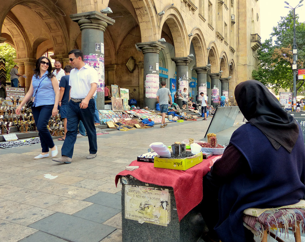 Наверное, самое время сказать об отношении к нам, россиянам. То, что мы из России, читалось сразу: жена моя светловолосая, на мне бейсболка цветов российского флага, да ещё на рубашке маленький красный флажок с буквами «СССР». Так вот, в Тбилиси и во всех других населённых пунктах Грузии отношение к нам было очень тёплым, доброжелательным. Все были готовы оказать нам помощь и ответить на любые наши вопросы.