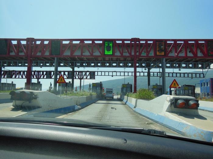 Это пункты оплаты дорог в Греции. Много. Дорого. За проезд туда-обратно отдали около 80 евро. Но их не жалко. Дороги — супер. Едешь 120 и засыпаешь. Нарушать не хотелось, нам этой скорости хватало. Торопились к морю, на достопримечательности время не тратили. На обратном пути.