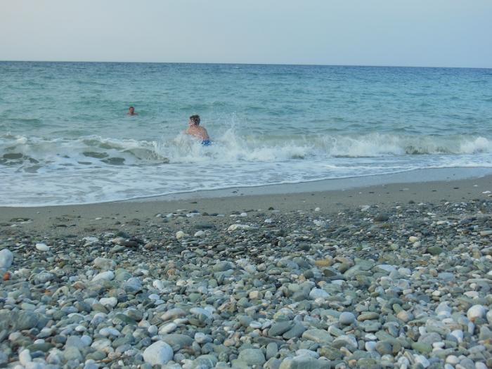 Но пляж опять галечный. Кстати, Эгейское море оказалось гораздо теплее Ионического.