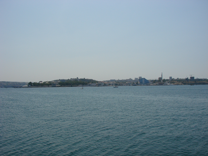Ночь застала под Ростовом, плюнул на сон, все равно ничего приличного у дороги не было, искать неохота, а тут уж и до Таганрога всего ничего. Ну, а за ним и граница. Подъехали к КПП в 4 утра. Часа через четыре прошли, где-то в пол-девятого. Сначала хотели искать где поспать, потом вокруг посмотрели, а у моря в кустах кучи таких же типа нас стоят, спят. Да еще и ДАИшники местные сказали, что до ближайшей гостиницы километров 100. В общем, часа три-четыре в кустах у моря поспали, больше не смогли — жуткая жара разбудила. Двинули дальше. После обеда, все же совсем жарко стало — решили искупаться, тем более, что в Азовском море еще не купались. Заехали в Геническ, там коса. Как мне показалось, это рай для мам с детьми. Их там просто толпы. Жилья сдается невероятное количество. Прямо на косе на пляжах можно арендовать и палатку, и домик из фанеры, и спальный мешок, можно и в машине спать, или вообще под открытым небом. Причем, многие так и делали, натянув тент под наклоном от машины к земле. В общем, на любой вкус и кошелек. Пляж — ракушечник. Море очень мелкое — метров 200-300 шел, так только по грудь, так и искупался, а вот 9-и летнему сыну понравилось, но вот вода не очень — не прозрачная, зеленая и не очень соленая.