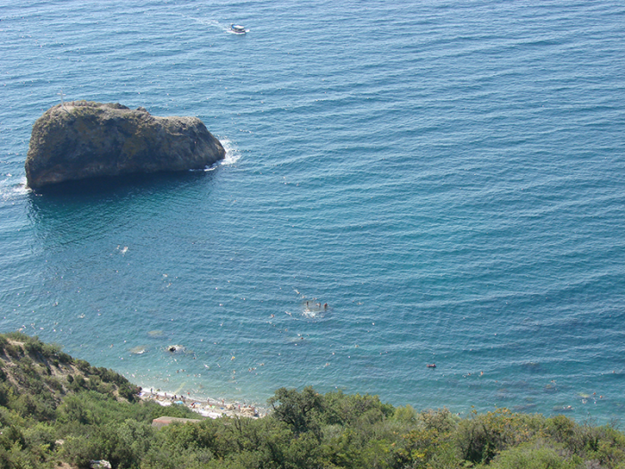 Вниз то мы спустились, еле-еле. А, вот, подниматься, что-то, не очень захотелось, благо, кораблик от туда в Балаклаву ходит. Искупались и не поднимаясь добрые метров 250 по отвесной скале умотали морем через Балаклаву.