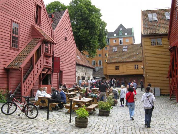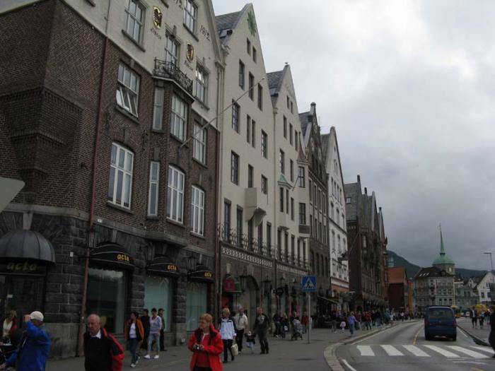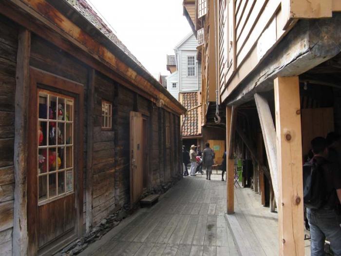 Первые здания Бергена появились именно здесь – на  старинной ганзейской набережной, которая на протяжении веков оставалась самой важной и самой оживленной частью города. Это место считается наиболее известным средневековым поселением Норвегии.  Забавные разноцветные деревянные домики, выстроенные в ряд, вдоль набережной, напоминают декорацию к старому фильму. На протяжении 400 лет квартал Брюгген находился под контролем ганзейских купцов. Территория Брюггена неоднократно страдала от пожаров. Когда идешь по узким проулкам и темным внешним галереям, кажется, будто попал в прошлое.