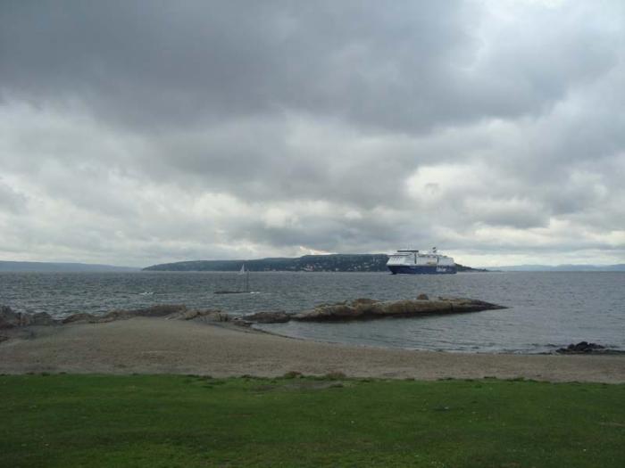 В 9:10 из отеля мы выехали. Решили, поскольку находимся рядом, заехать на полуостров Бугдей на Ослофьорд. Вроде попрощаться с норвежскими фьордами. Хотя Ослофьорд похож просто на залив. Зимой я уже была на этом берегу. Но и летние пейзажи красивы. Машину поставили на большую стоянку в районе конечной остановки автобуса. Стоянка недорогая, мы заплатили всего 5 NOK.