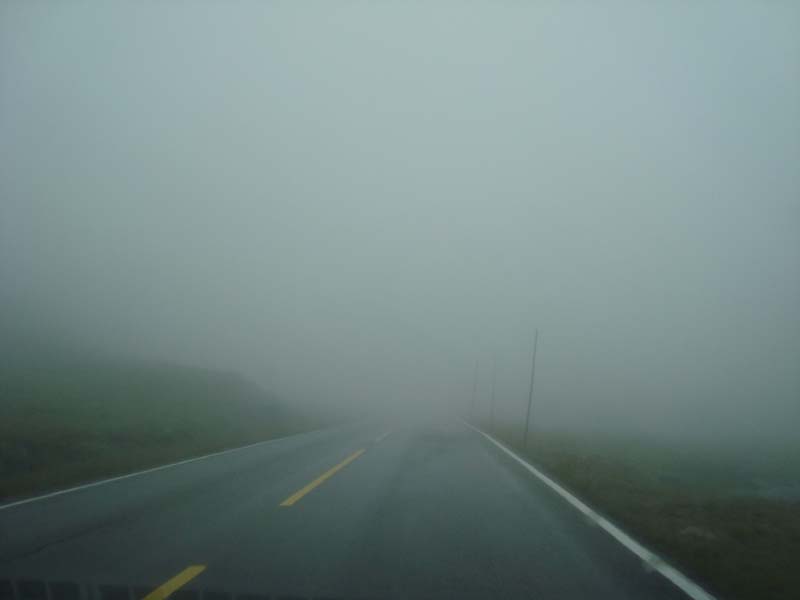 Дальше никаких достопримечательностей не запланировано, только ехать до места ночевки. Но вдруг стал сгущаться туман. Он был настолько плотным, что не видно ничего на расстоянии вытянутой руки. Пришлось включить все фары, в том числе противотуманки. Очень тяжело было ехать, когда впереди не было машин и не было огоньков.