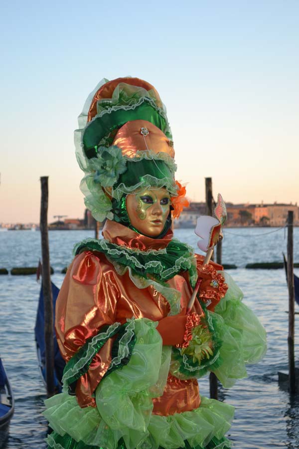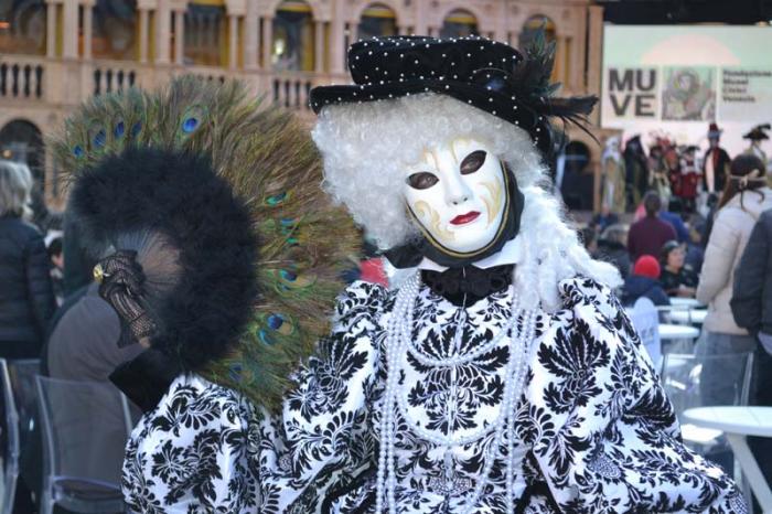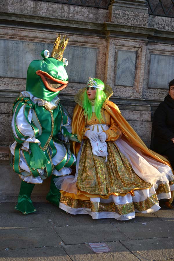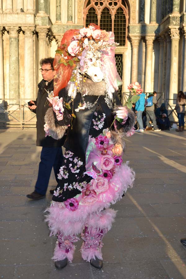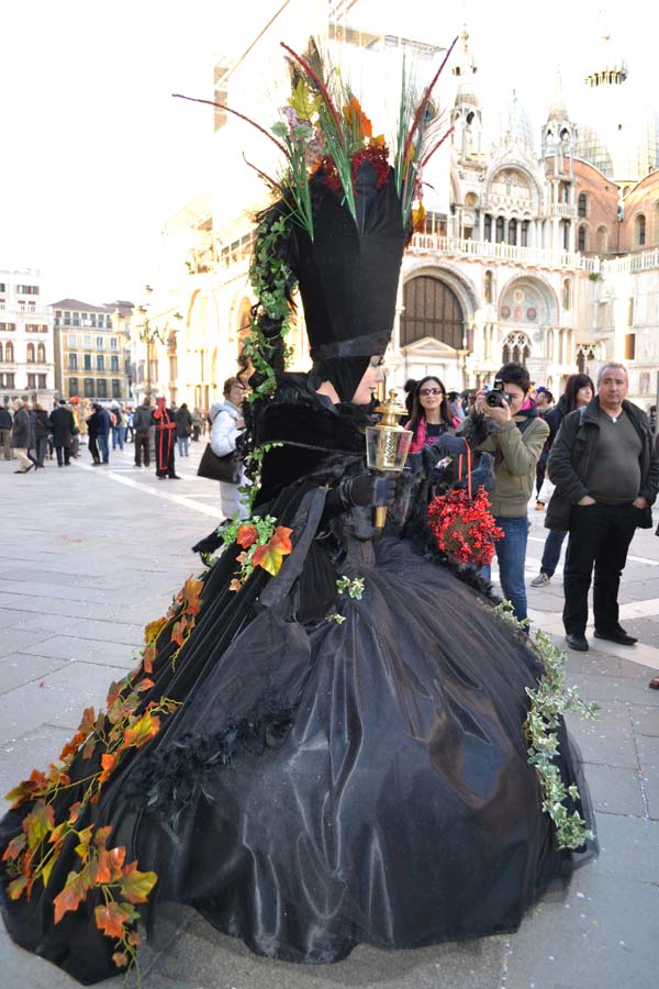 Во-первых, что такое сам карнавал, по крайней мере его уличная часть глазами туриста, вернее моими? На площади Сан Марко построена большая сцена, часть площади перед сценой огорожена, там столики, стульчики. Это для тех, кто заплатил и участвует в голосовании при оценке масок. Два раза в день по несколько часов проходит дефиле масок, участники соревнуются между собой костюмами и масками. В конце концов, в финальный день выбирается лучшая. В этот раз была тема «Великолепная природа». Поэтому все соревнующиеся были растениями, птицами и животными. Кто победил, не знаю.