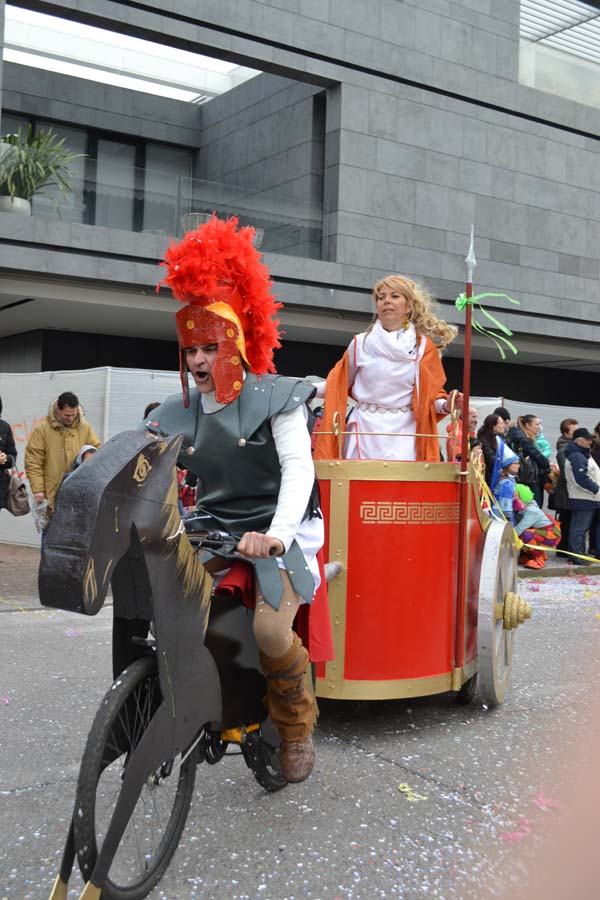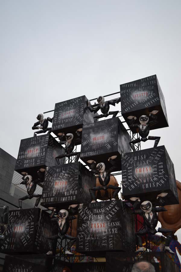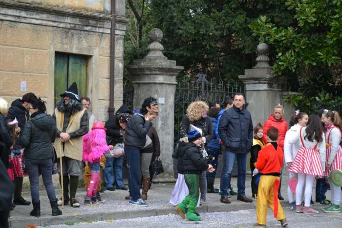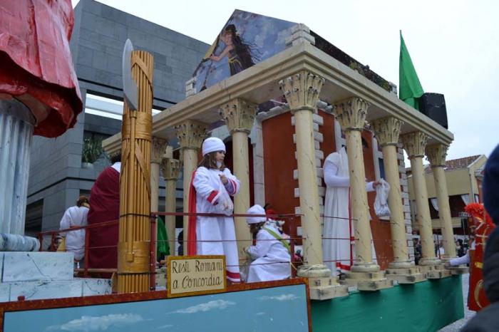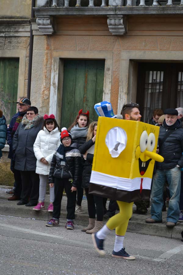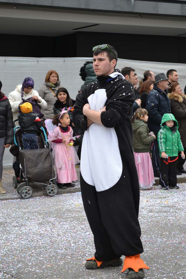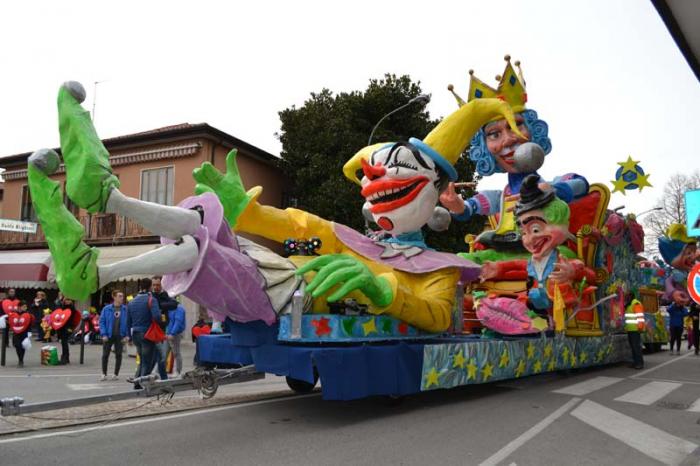 Зато благодаря моим итальянским друзьям, я узнала, что карнавал – это не только Венеция. Я побывала на шествии платформ в городке Ceggia. Это всего минут 15 на электричке от городка, где я жила. Можно доехать и на автомобиле. Только надо знать, что его придется оставить далеко от центра. Все оцеплено, пройти можно только пешком, вход платный, 6 евро. По главной улице, начиная от церкви, проходит парад платформ. Каждая коммуна целый год за счет спонсоров строит эти платформы, придумывает представление и во время карнавала это показывает на шествии. Участвуют и дети, и взрослые. Очень забавно было смотреть, как солидные дяди в костюмах пингвинчиков самозабвенно стараются выполнить нужные движения под музыку.