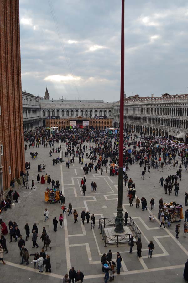 Да, забыла еще об одном действе, во время карнавала. Это Полет Орла, Полет Осла и еще чей-то. С купола Сан Марко или с колокольни вниз слетает ряженый известный человек, никто заранее не знает, кто именно. Смысл во всем какой-то есть, но я его точно не знаю. В этом году слетала известная итальянская фигуристка Каролина Костнер, видимо за ее заслуги в только что закончившейся олимпиаде. Народищу собирается немеряно. Плюс происходит это в выходной. Народу столько, что даже по улицам не протолкнуться, реальные пробки. Через мост Риальто не перейти – затор. Я ни попала ни на один полет и не жалею.